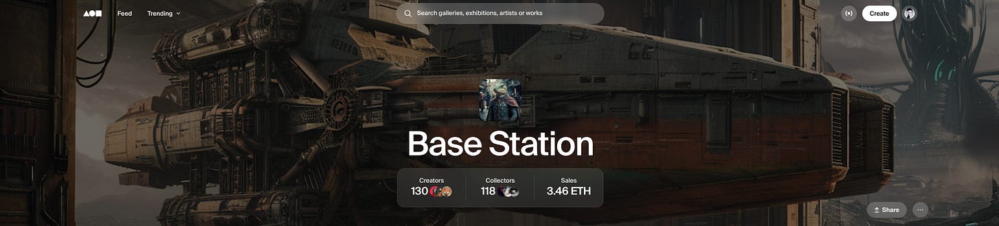 In today’s section of artists to meet, I wanna highlight not a list of artist, but an exhibition curated by Mark Kelly (@saucebook), named Base Station, which already has 130 artists who are minting arts on Base chain.